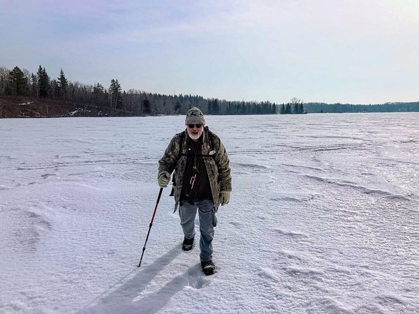 A geocaching buddy Hugh and I trudged across lake ice early in March, 2021 to get to an island on which a “puzzle” geocache was hidden. The story of that experience could be made more dramatic if two of us were hunched over walking into howling wind and pelting snow, icicles hanging on beards and eyeballs freezing in their sockets.