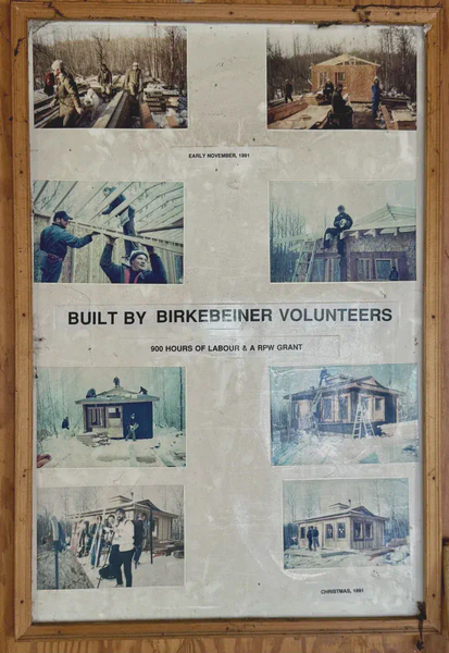 The shelter was built by volunteers during November-December 1991. A framed series of photos in the shelter shows the shelter taking form and notes it took “900 hours of labour” to build. My gratitude goes out to the people who applied their skills, time and energy to the building of this gem of a place.