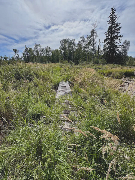 When you start the hike from the “Back Door” the trail is one-track path, often with plant growth reaching across the trail. But for most of the day I was on the “main” Blackfoot trails that are used for two-lane cross-country ski tracks in the winter so they are easily two vehicles wide, mowed, trimmed along the edges and generally free of any deadfall. They are a dream to walk along.