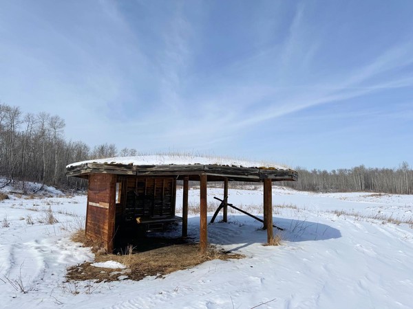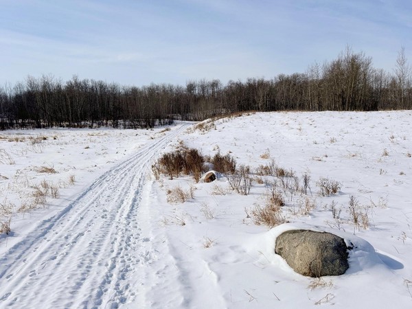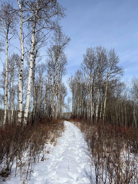 I walked the familiar route from the UofA Access Road gate to the unfamiliar boggy shoreline of a large pond in the Ministik.