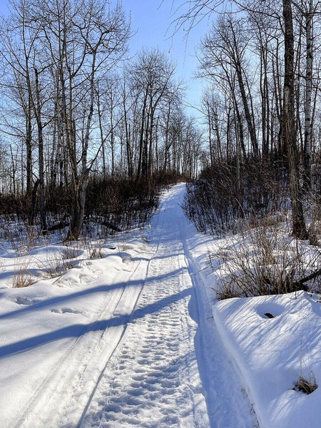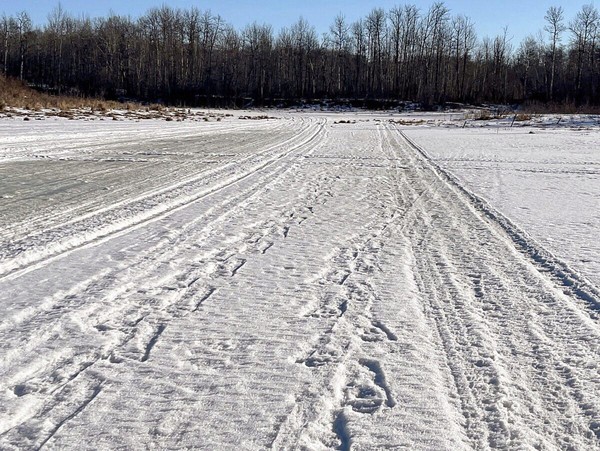 But the ice was solid, as were most of the trail because the snow on them had been packed down by snowmobiles. It was like walking on a city sidewalk really. And with microspikes attached to my boots, there was no chance of slipping and sliding on the ice or the trails.