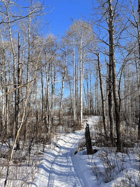 I had waited for awhile for optimum weather conditions to do this hike. And optimal they were today: the snow was hard-packed, the temperature was reasonable and the sun was in full force.