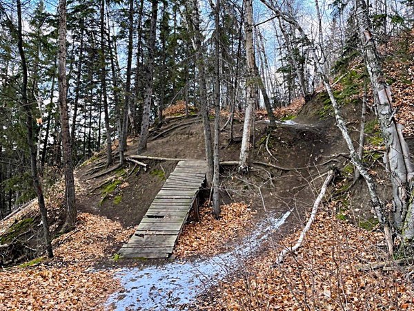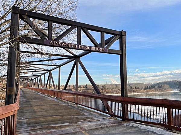 The walk from the Terwillegar Dog Park to Fort Edmonton takes you over the N Sask River through mountain bike trails and then over the river yet again.