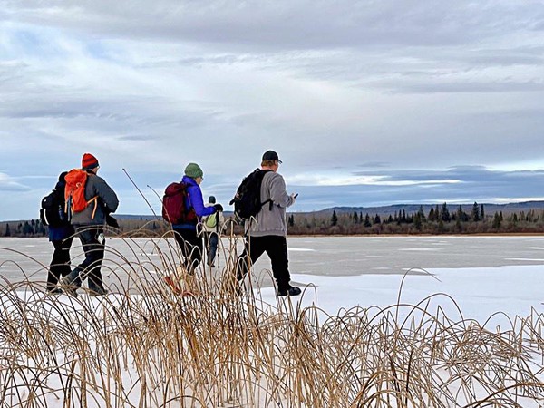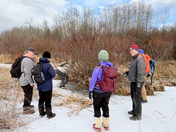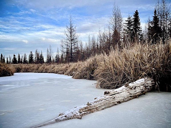 I walked the familiar route from the UofA Access Road gate to the unfamiliar boggy shoreline of a large pond in the Ministik.