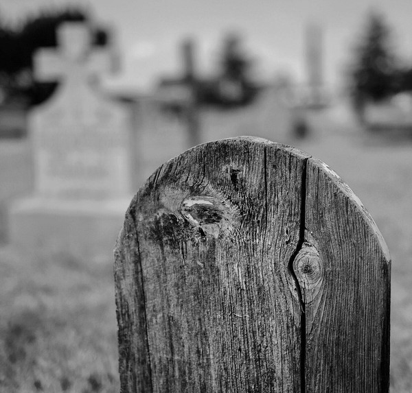 Most of the grave markers in the cemetery are modern markers made of stone, but there are also older wooden markers, a few showing the ravages of time.