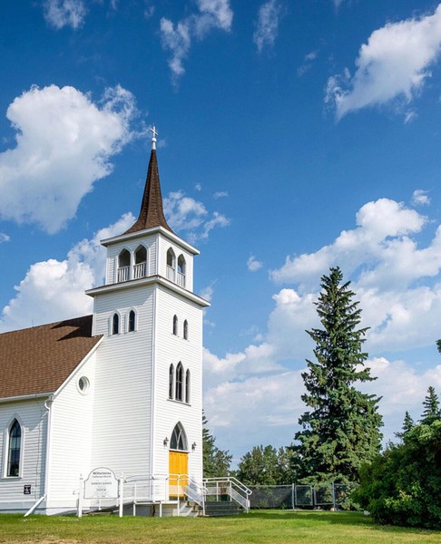 The church website details the options considered for the church’s location, and the political fallout from the choice, but after all this work began on the church at the present location in 1912. The work was finished the next year, an organ purchased in Winnipeg (for $114.30) and over the next 5 years money was raised to pay for internal furnishings like the altar, lectern, and pews. Years later, money was raised for a church bell purchased for $221.47 from the St. Louis Bell Foundry in St. Louis, Missouri.
